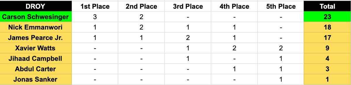 1. Most first-place votes